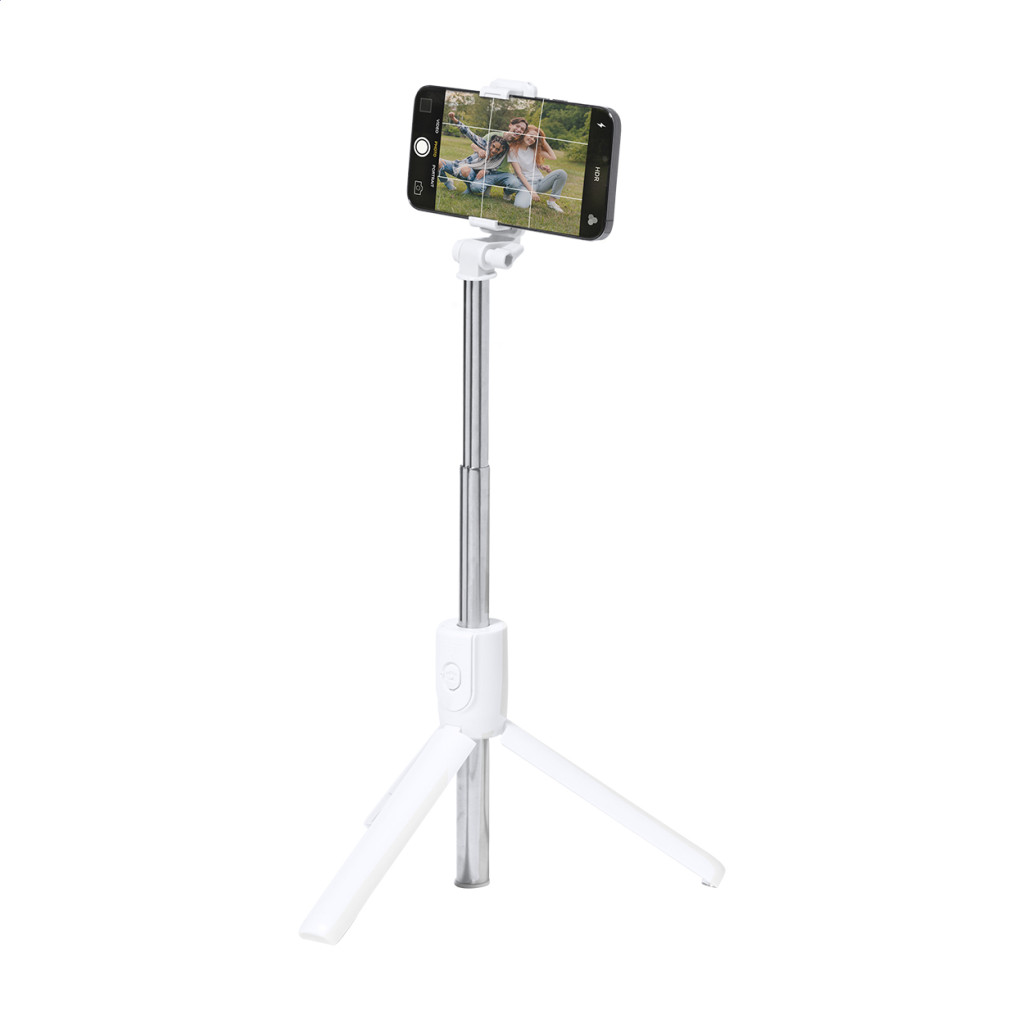 Összecsukható állvány és szelfibot ABS műanyagból és rozsdamentes acélból, állítható mobiltelefon-tartóval. vezeték nélküli exponáló távirányítóval együtt.