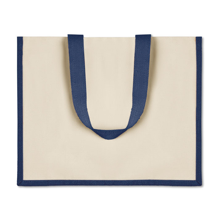 Laminált juta bevásárlótáska. Vászon elülső rész és hosszú, pamut fül.