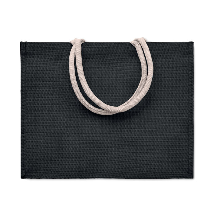 Juta laminált bevásárló- vagy strandtáska pamut füllel. Rövid fülekkel.