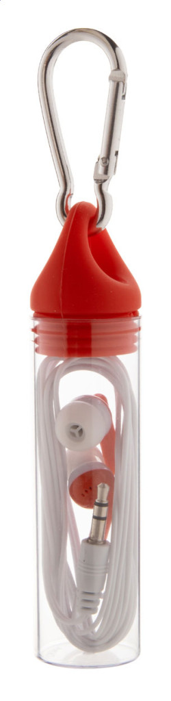 Füllhallgató 3,5 mm audió Jack csatlakozóval, műanyag tokban, karabinerrel és azonos színű kupakkal.