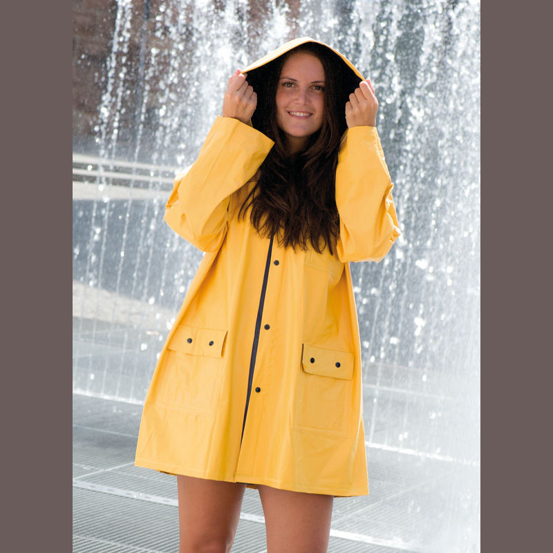 Kétszínű kifordítható esőkabát PVC-ből, XL méretben, patenttal, kapucnival.