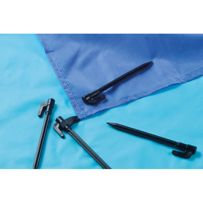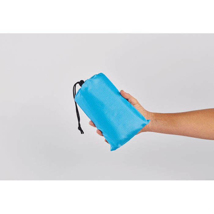 Könnyű, 210T poliészterből készült, 200x210 cm méretű strandszőnyeg. 4 fekete kampóval és hozzá illő, húzózsinóros hordtasakkkal a könnyű szállítás érdekében.