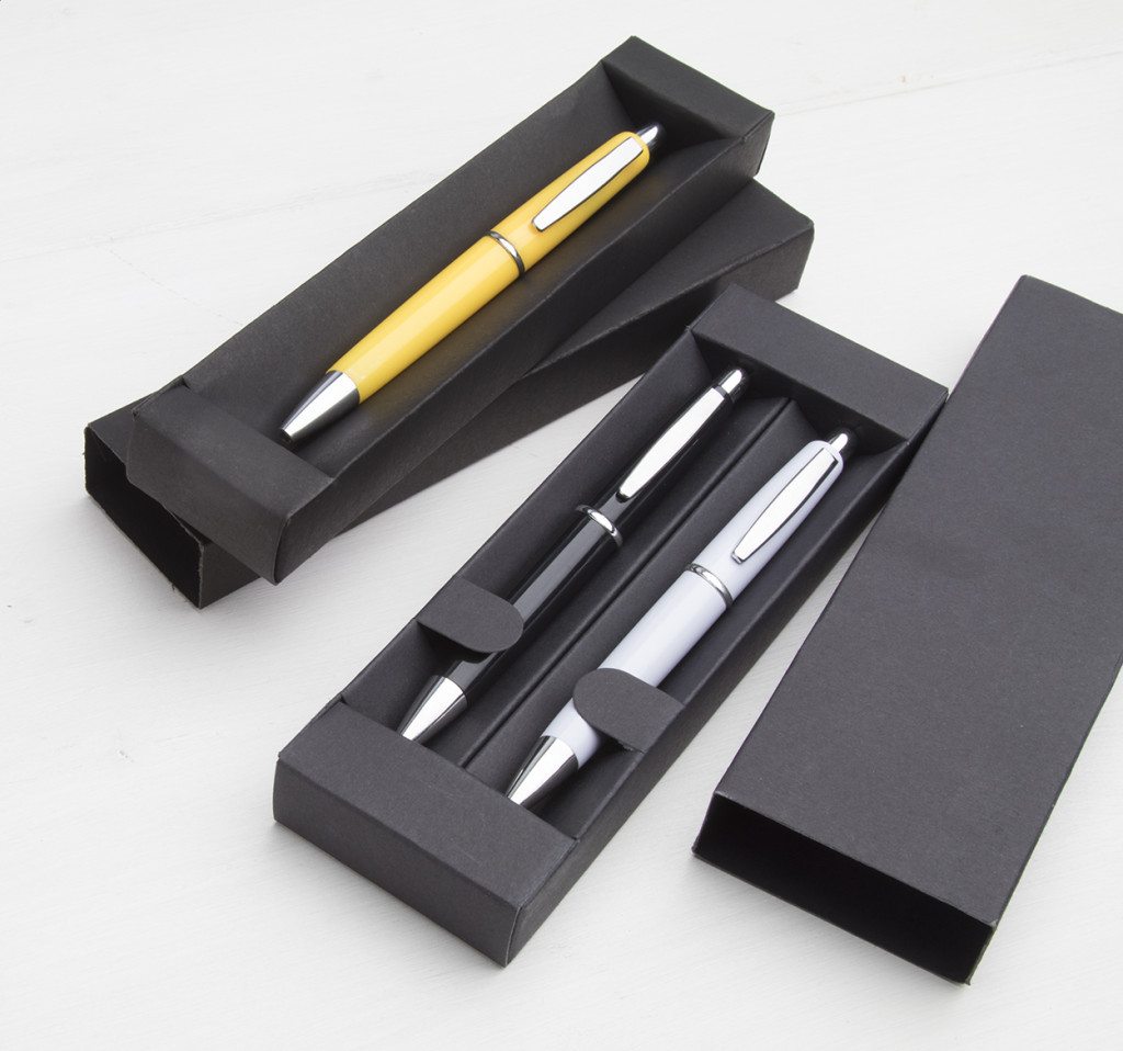Fekete karton tolldoboz, egy toll tárolásához.