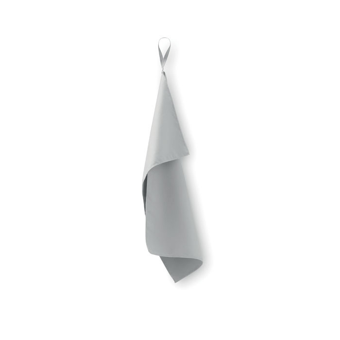 Mikroszálas törölköző 90% poliészterből és 10% poliamidból, rugalmas pánttal. Könnyű és gyorsan szárad. Méret: 30x50 cm.