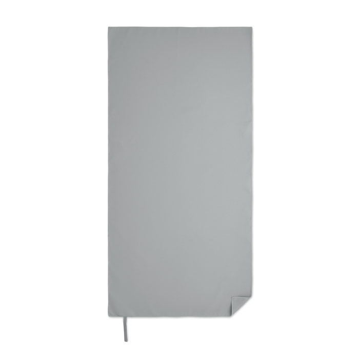 Mikroszálas törölköző 90% poliészterből és 10% poliamidból, rugalmas pánttal. Könnyű és gyorsan szárad. Méret: 50x100 cm.