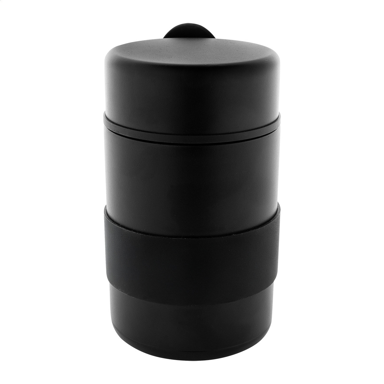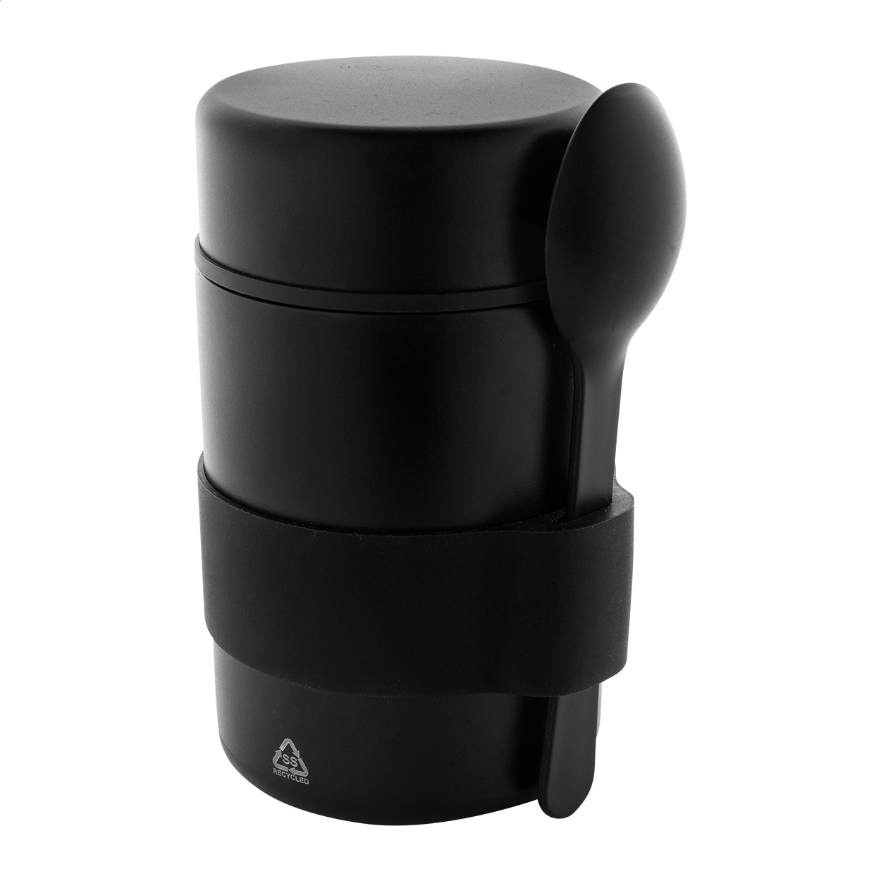 Duplafalú, újrahasznosított rozsdamentes acélból készült, vákuumszigetelt ételdoboz szilikon fogantyúval és PP kanállal. 450 ml.