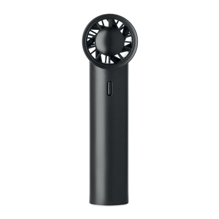 Mini kézi ventilátor ABS-ből, kijelzővel és 5 sebességfokozattal. Cserélhető, 2600 mAh kapacitású, újratölthető lítium akkumulátorral.