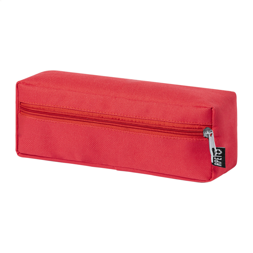 Cipzáros RPET poliészter anyagú tolltartó. 600D RPET poliészter, megkülönböztető RPET címkével.