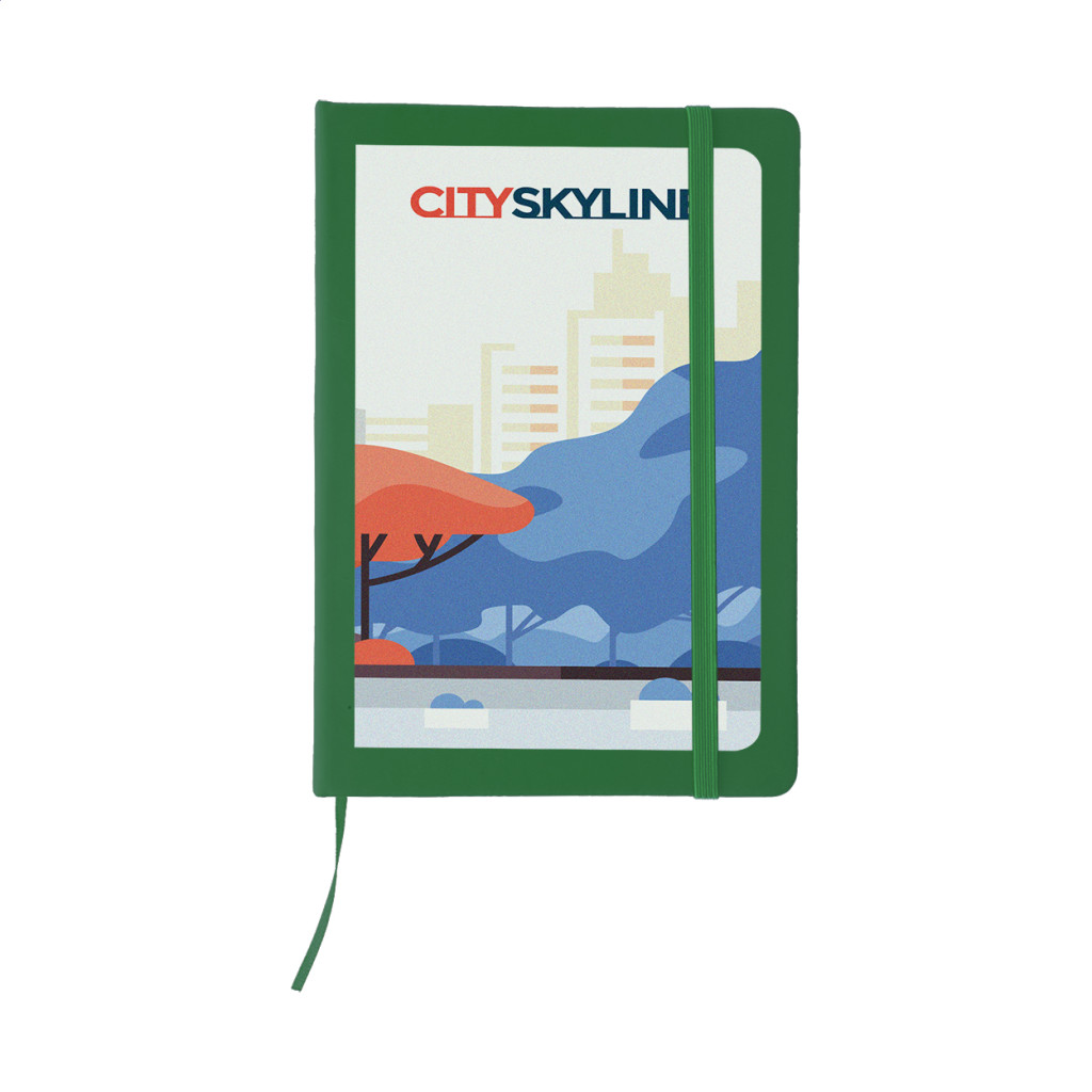 PU bőr borítású jegyzetfüzet 100 sima lappal, könyvjelzővel, gumipánttal zárható.