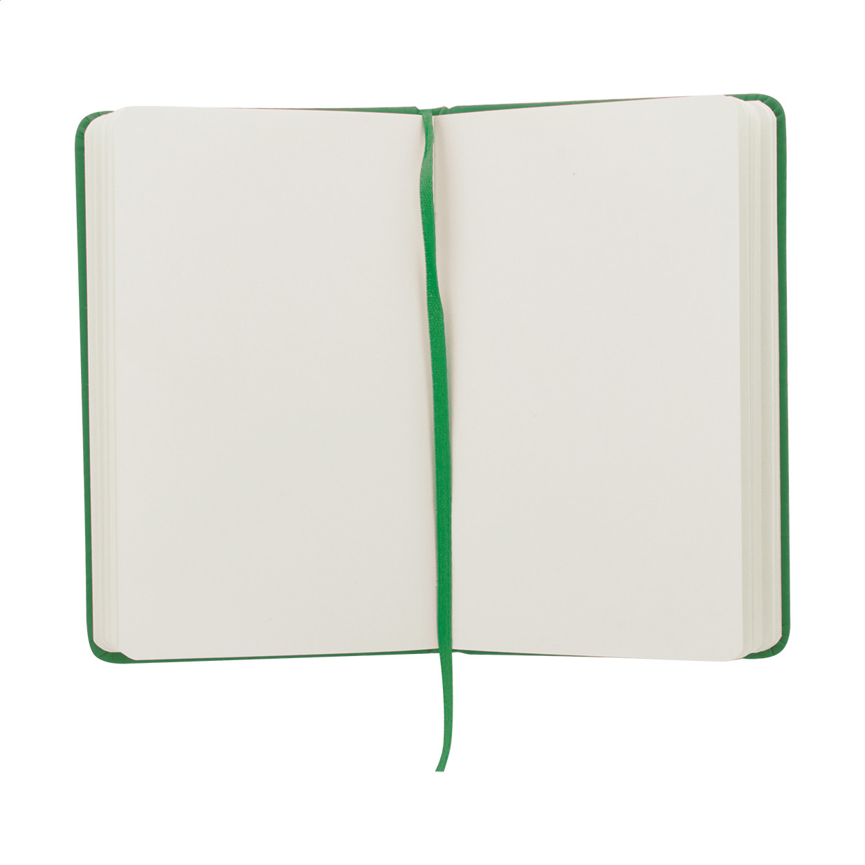 PU bőr borítású jegyzetfüzet 100 sima lappal, könyvjelzővel, gumipánttal zárható. A6 méretű.