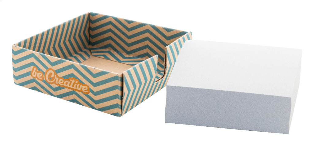 Egyedi gyártású, kraft papír jegyzettartó 300 lapos jegyzettömbbel, újrahasznosított papírból (90×90 mm). Az ár tartalmazza a tartó full colour nyomtatását. Minimális rendelési mennyiség: 100 db.