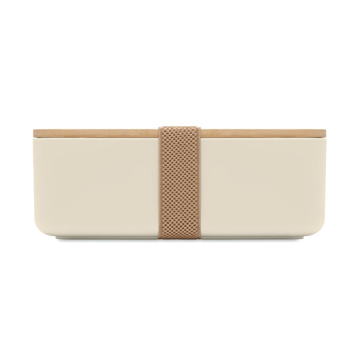100% kukorica PLA uzsonnás doboz bambuszfedéllel és RPET elasztikus rögzítőpánttal. Űrtartalom: 1000 ml.