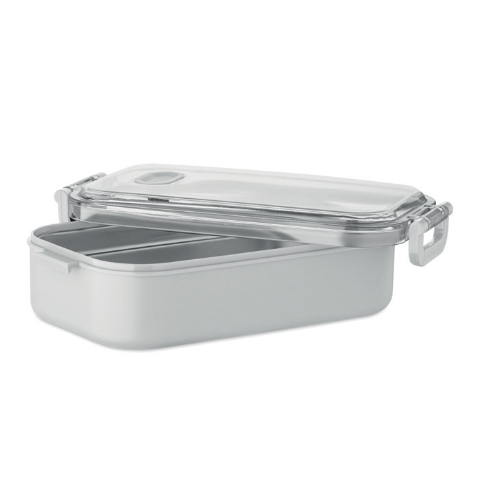 PP uzsonnásdoboz további újrahasznosított rozsdamentes acél belső réteggel. Légmentes AS fedéllel, amely frissen és biztonságosan tartja az ételt. Űrtartalom 750 ml tálca nélkül és 650 ml tálcával.