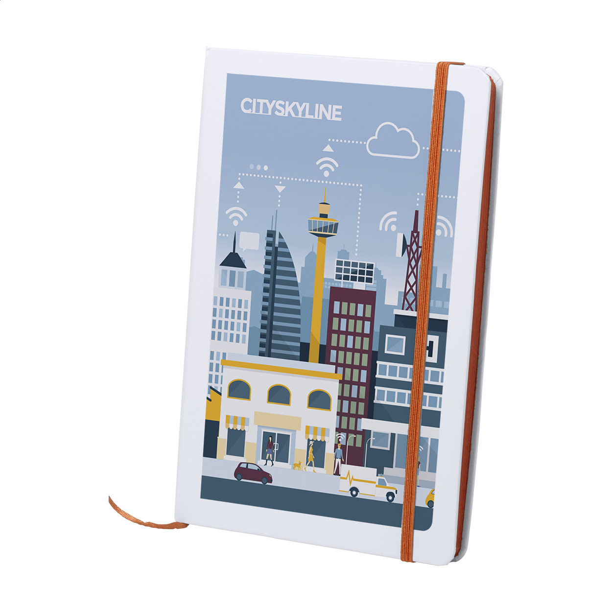 Papír borítású jegyzetfüzet 100 sima lappal, színezett lapélekkel és azonos színű könyvjelzővel és gumipánttal, A5.