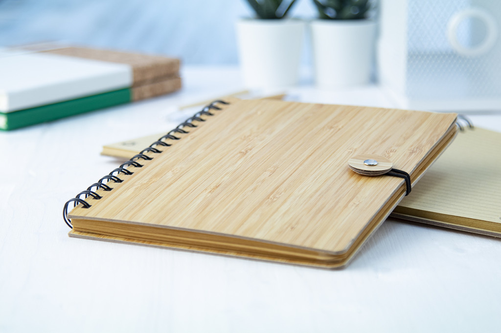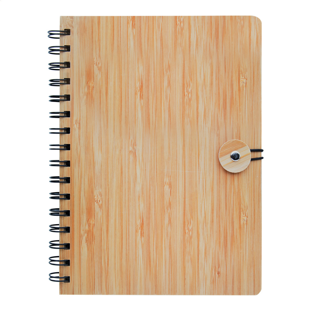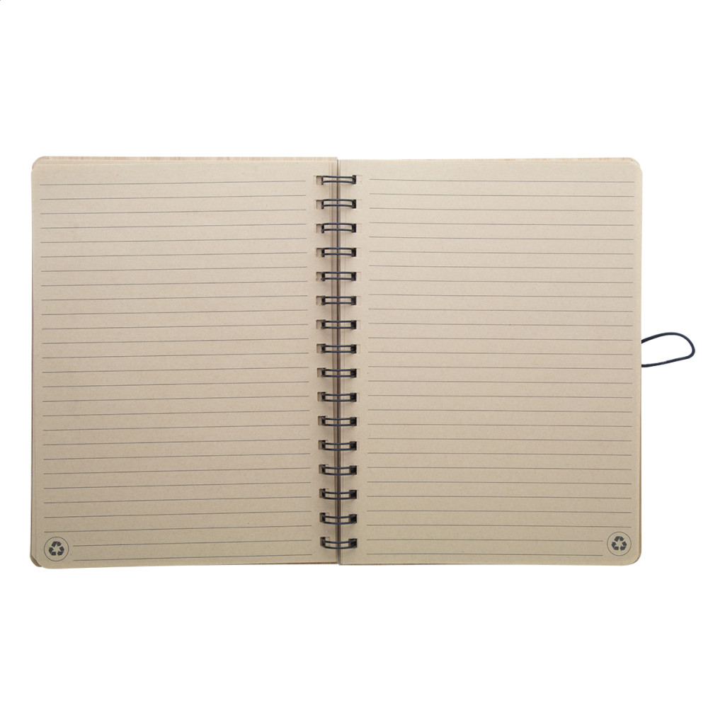 Bambuszból készült spirál jegyzettömb 80 vonalas lappal.