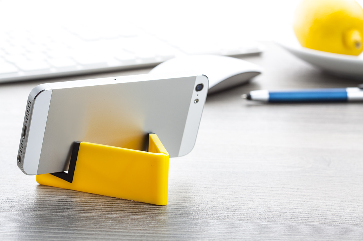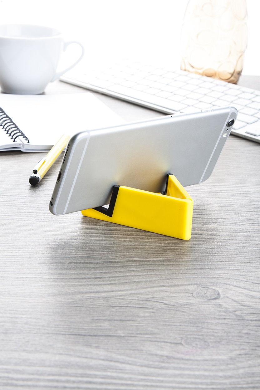 Műanyag, összecsukható mobiltelefon- és táblagéptartó.