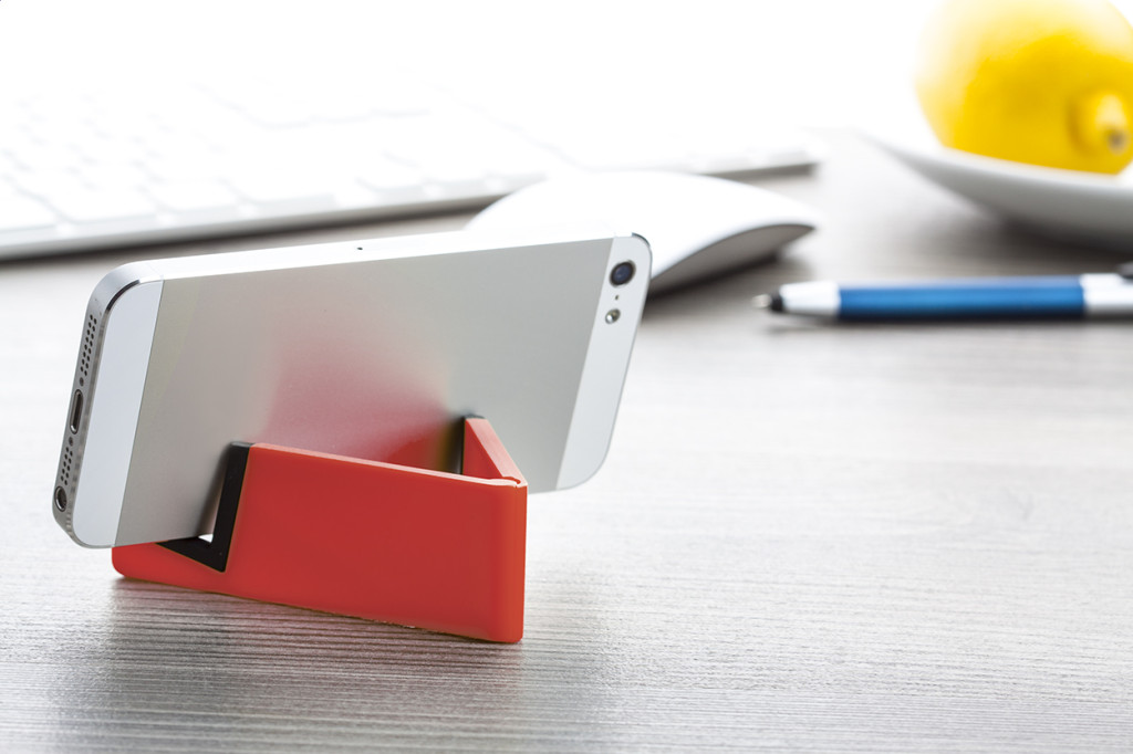 Műanyag, összecsukható mobiltelefon- és táblagéptartó.