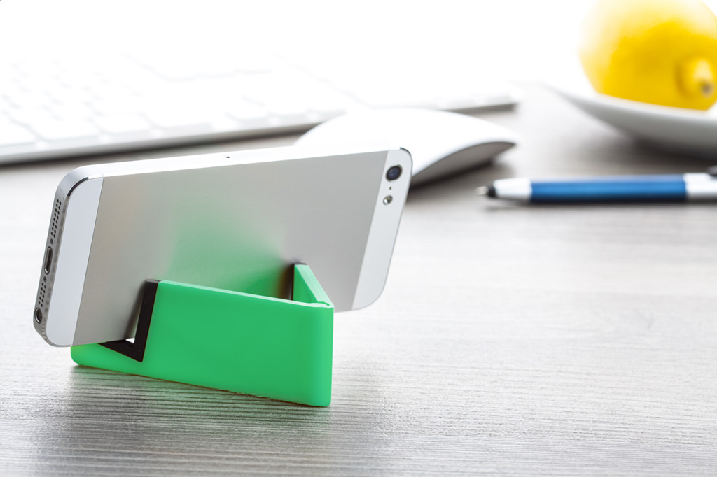 Műanyag, összecsukható mobiltelefon- és táblagéptartó.