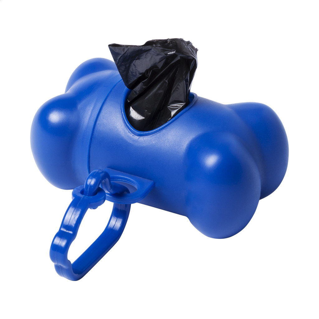 Csont alakú műanyag tartó, 15 db kutyapiszok gyűjtő zacskóval és karabinerrel.