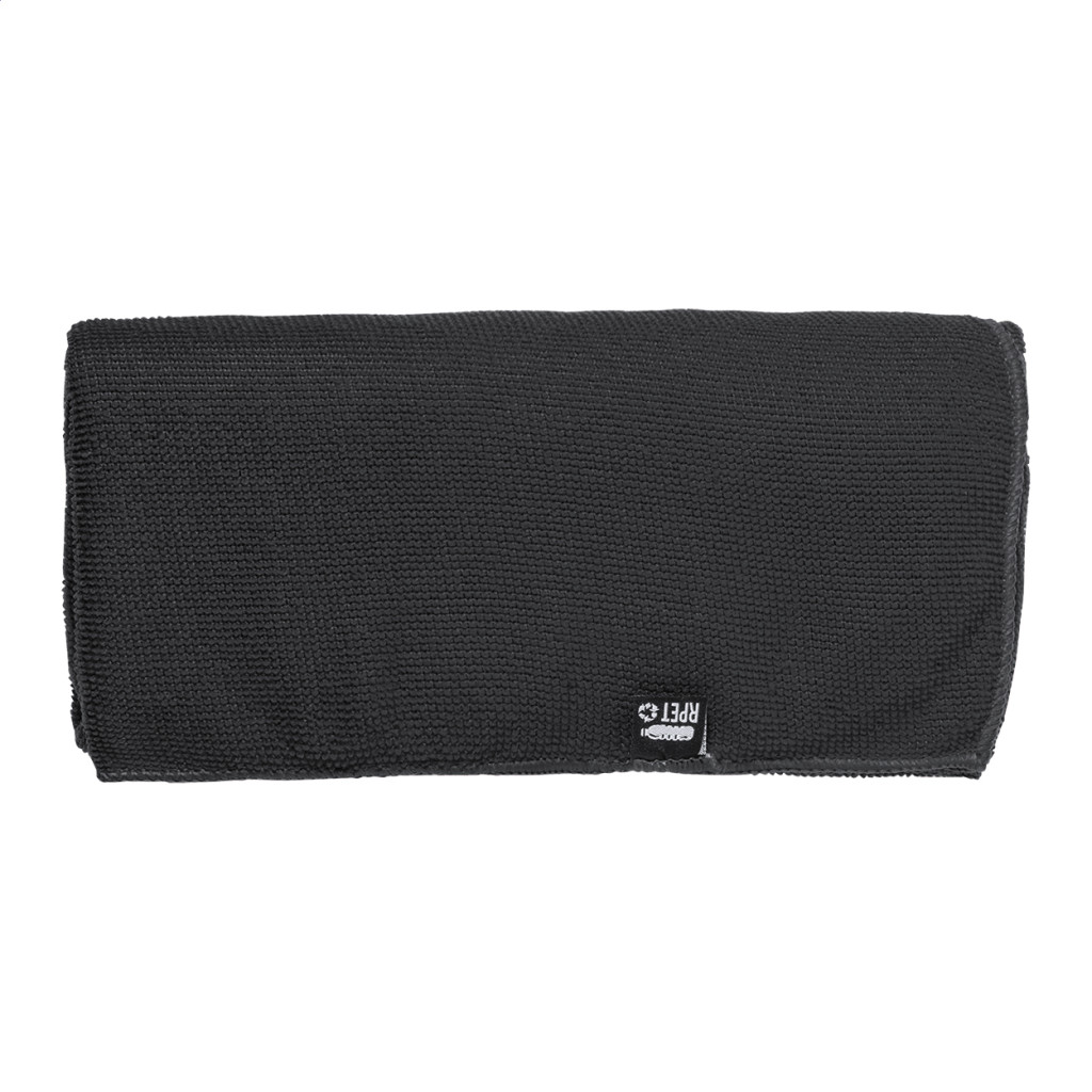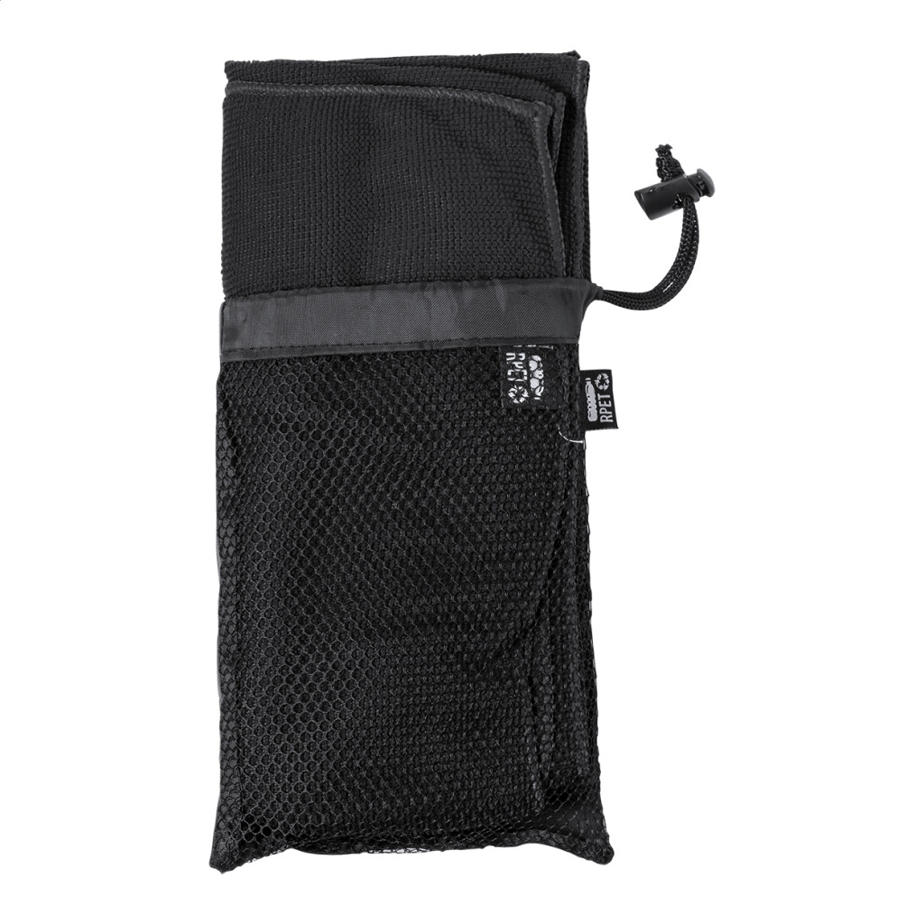 Mikroszálas, RPET poliészter anyagú sport törölköző hordtáskában, RPET címkével ellátva. 160 g/m².
