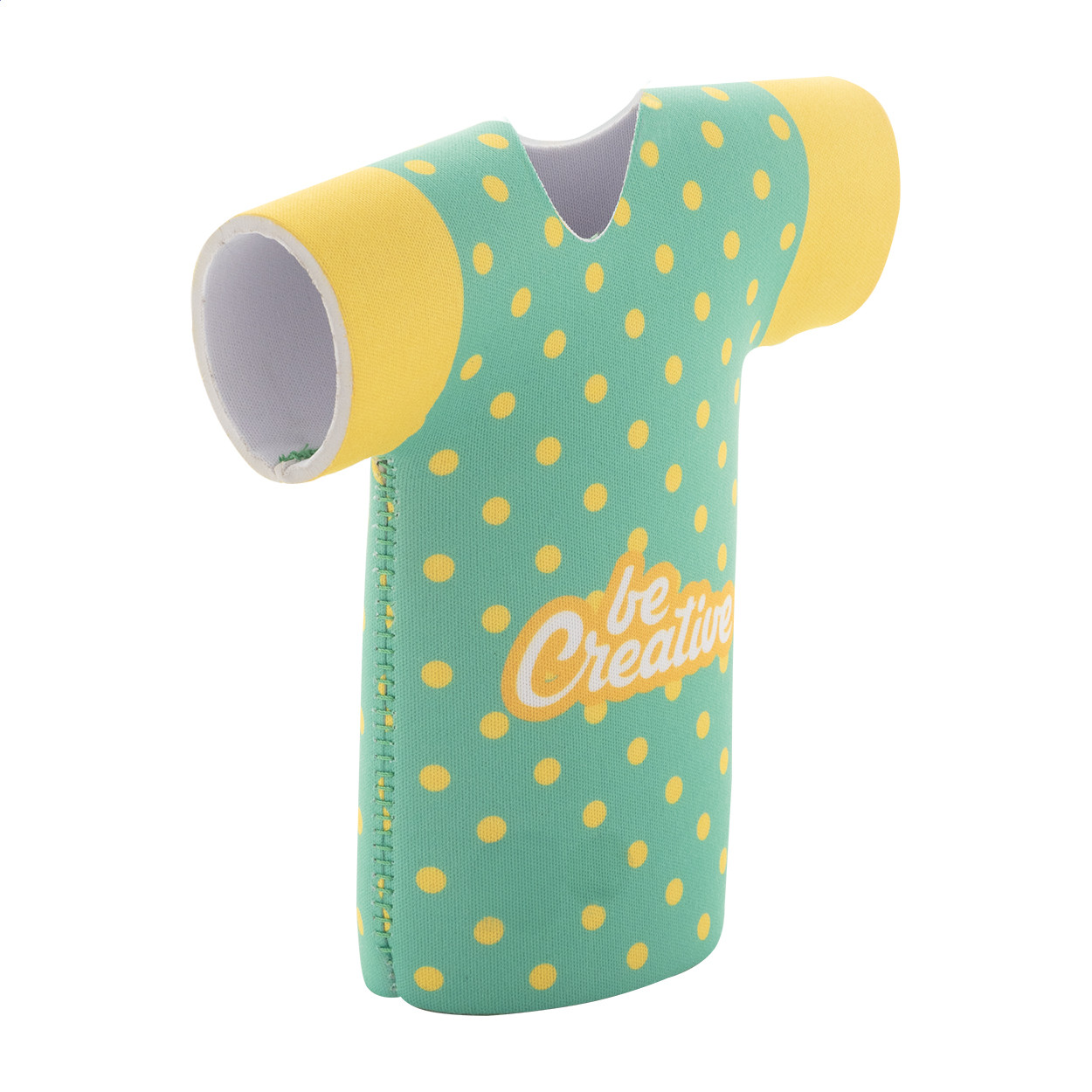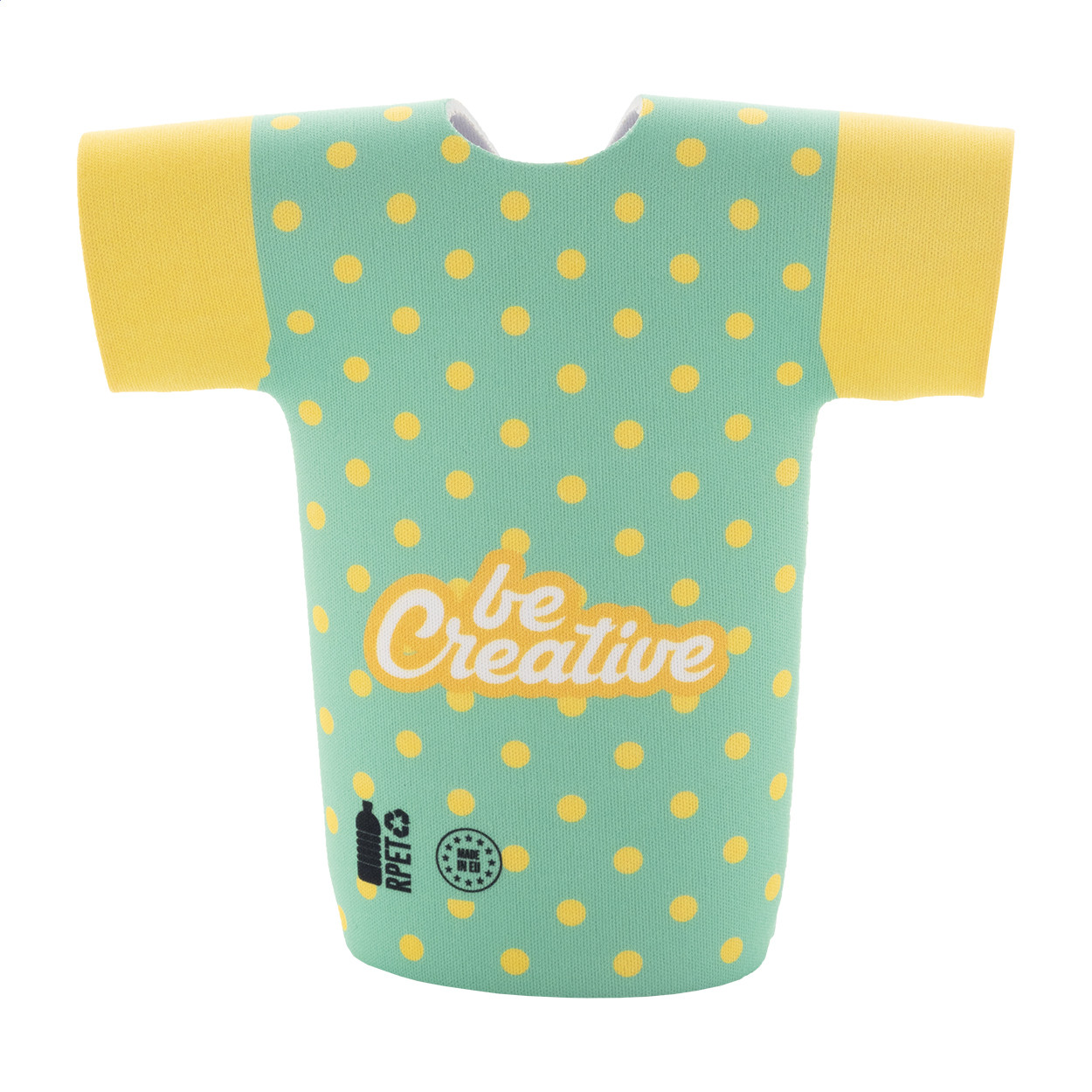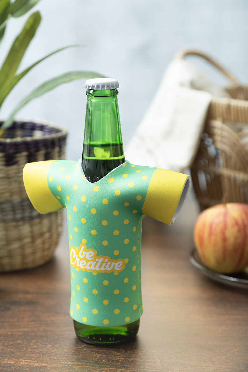 Egyedi gyártású, RPET neoprén sörösüveg hűtő póló formában. Teljes felületén szublimációs nyomtatott grafikával. Minimális rendelési mennyiség: 50 db.