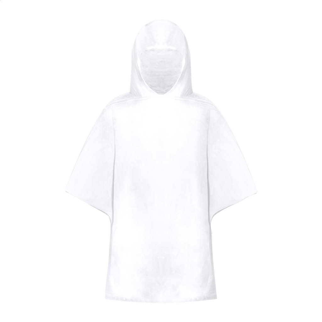 Átlátszó LDPE poncsó gyerekeknek. RPET poliészter hordtasakban, megkülönböztető RPET címkével és alumínium karabinerrel.