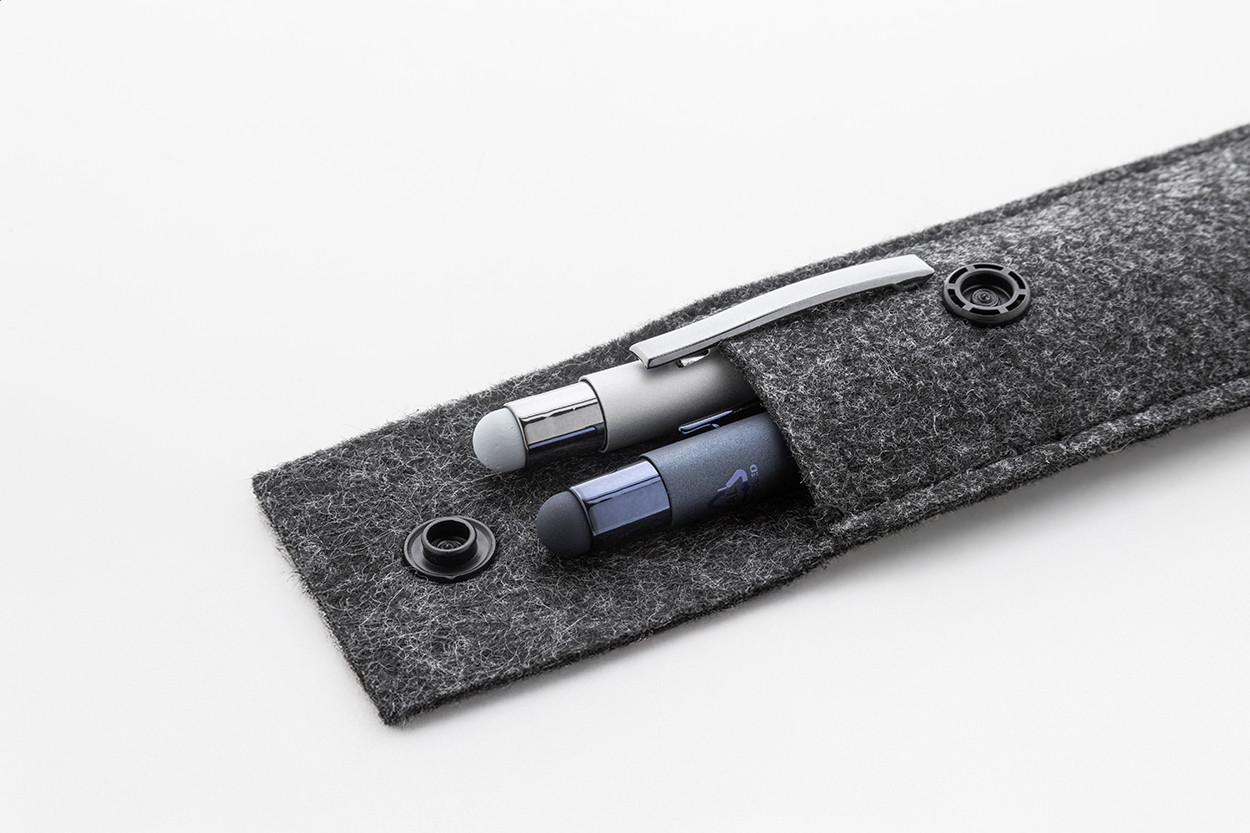 RPET filc tolltartó 2 tollhoz, gomb zárással.