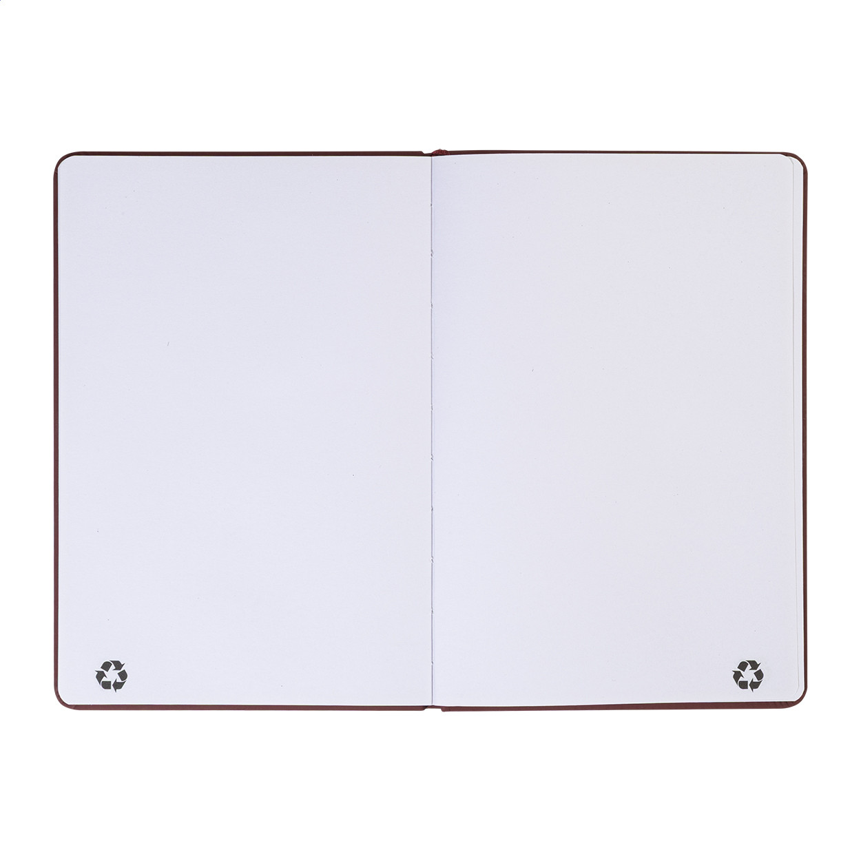 Úrahasznosított PU bőr borítású jegyzetfüzet újrahasznosított papírból készült 100 sima lappal. Hozzáillő színű gumipánttal és könyvjelzővel. A5 méretű.
