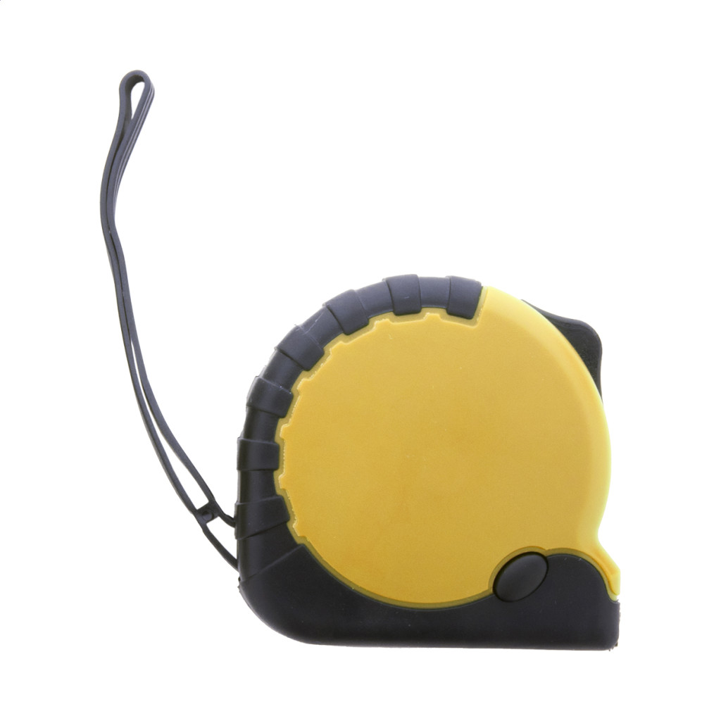 Újrahasznosított ABS műanyag mérőszalag fékező funkcióval, fém klipsszel és csuklópánttal, 3 m.