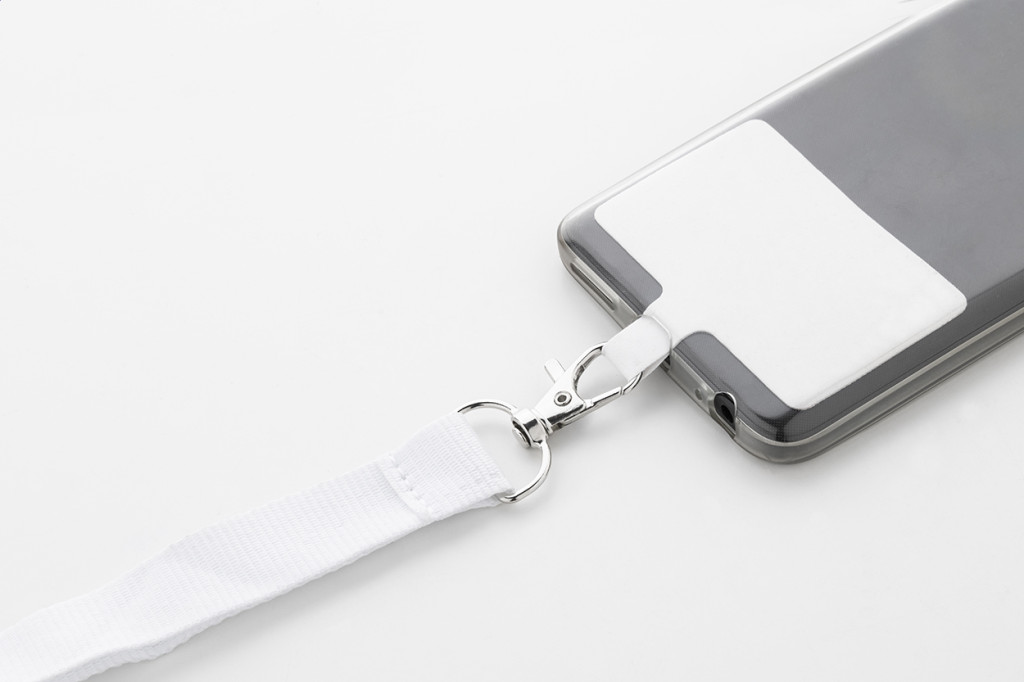 RPET mobiltartó nyakpánt fém karabinerrel, biztonsági csattal és hozzáillő színű telefonbetéttel.
