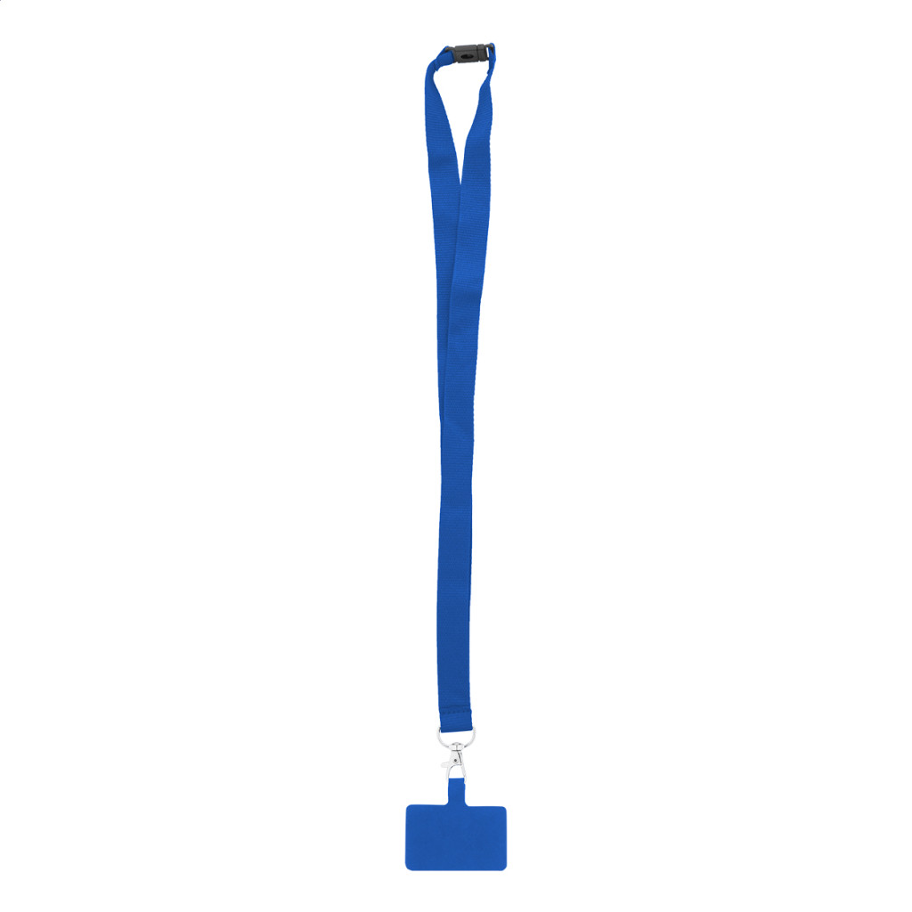 RPET mobiltartó nyakpánt fém karabinerrel, biztonsági csattal és hozzáillő színű telefonbetéttel.
