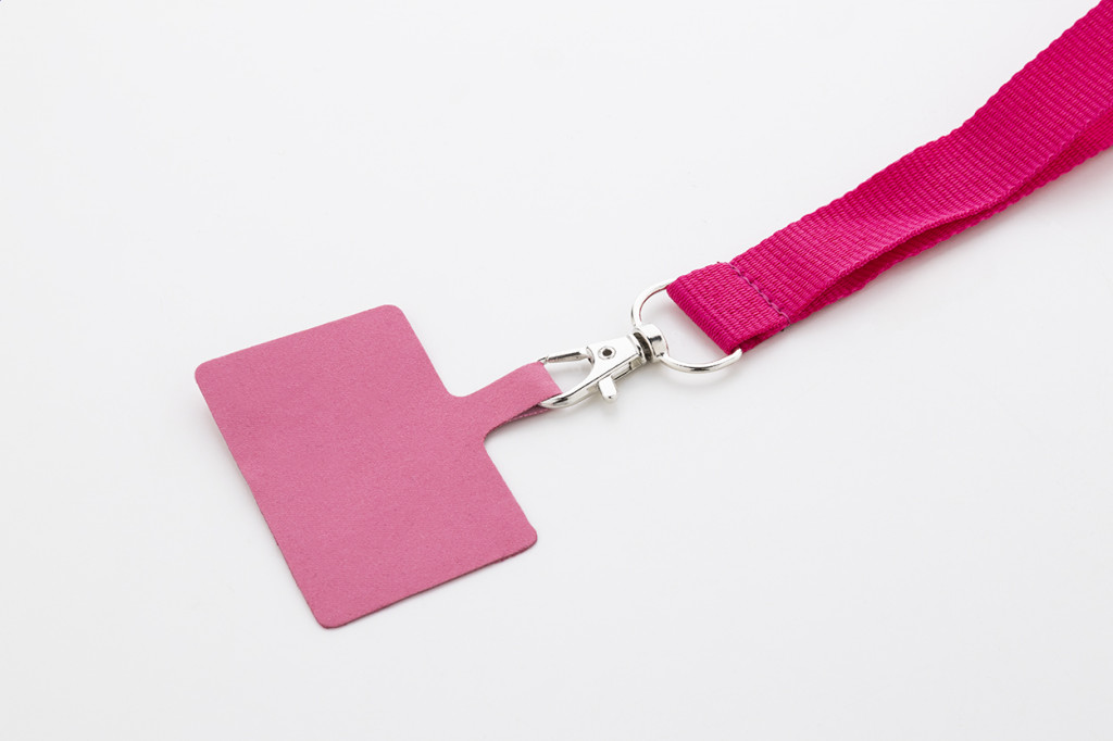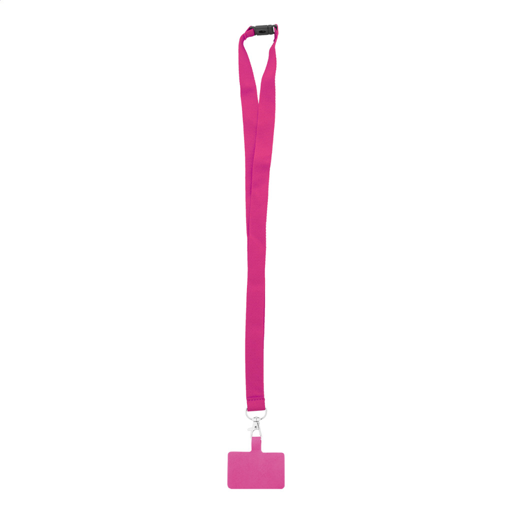 RPET mobiltartó nyakpánt fém karabinerrel, biztonsági csattal és hozzáillő színű telefonbetéttel.