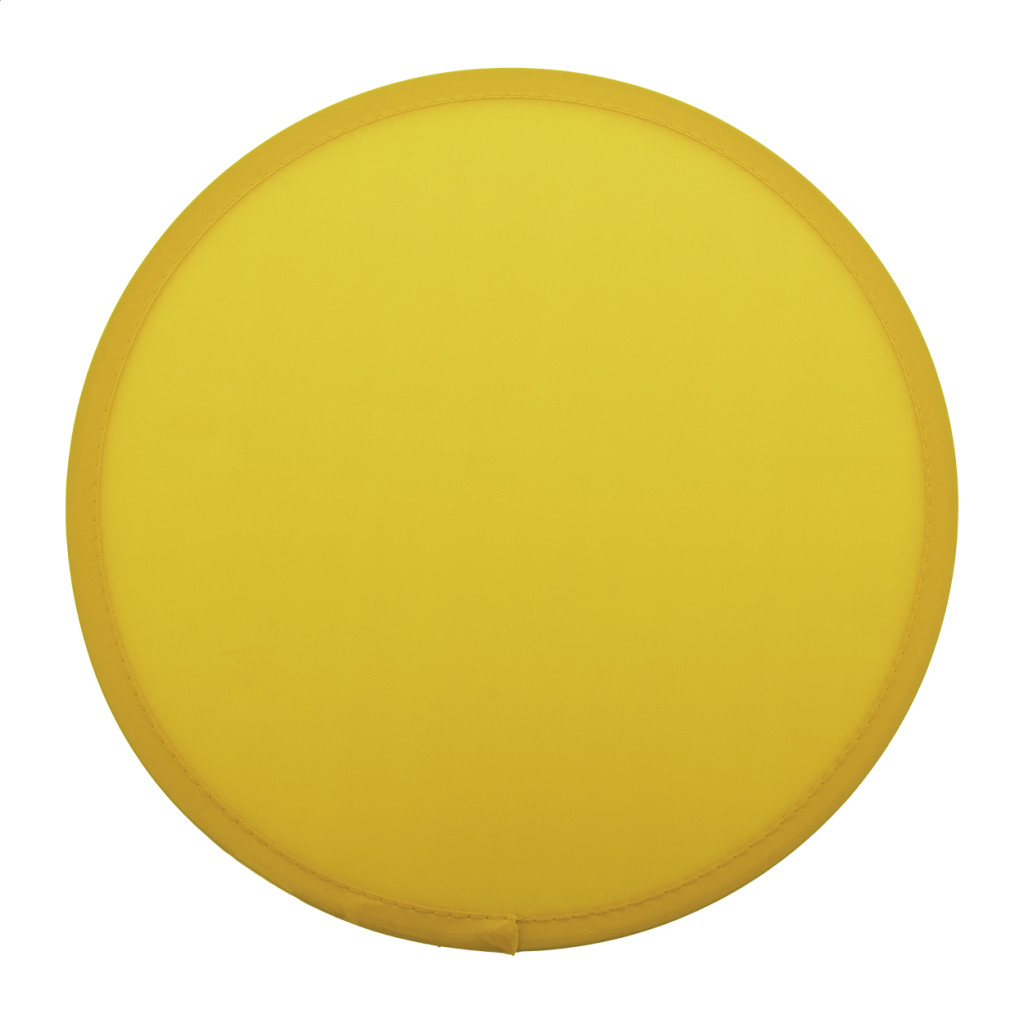 Összehajtható RPET poliészter frizbi tokkal. Megkülönböztető RPET címkével.