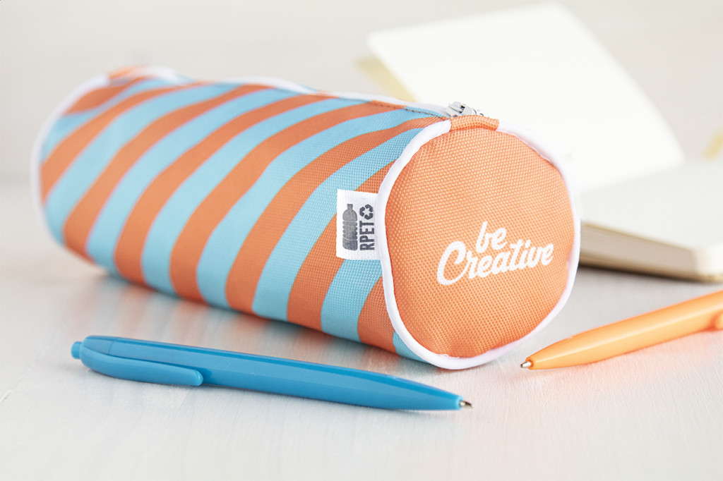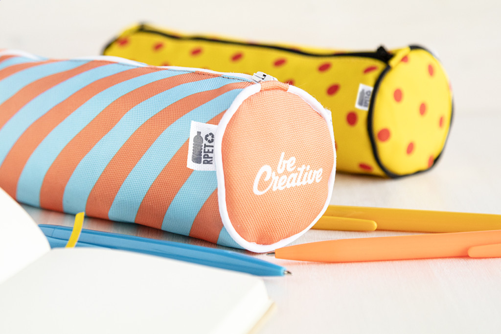 Egyediesíthető, kerek, 600 RPET poliészter tolltartó, cipzárral. Az ár tartalmazza a szublimációs emblémázás költségét a termék teljes felületén és az egyedi RPET címkét. Minimális rendelési mennyiség: 50 db.
