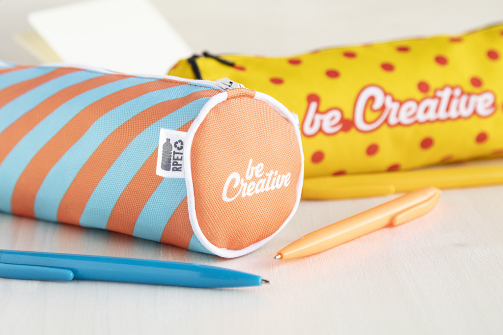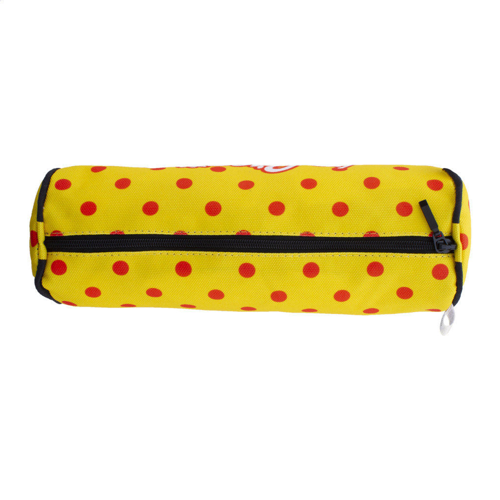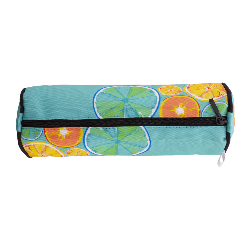 Egyediesíthető, kerek, 600 RPET poliészter tolltartó, cipzárral. Az ár tartalmazza a szublimációs emblémázás költségét a termék teljes felületén és az egyedi RPET címkét. Minimális rendelési mennyiség: 50 db.