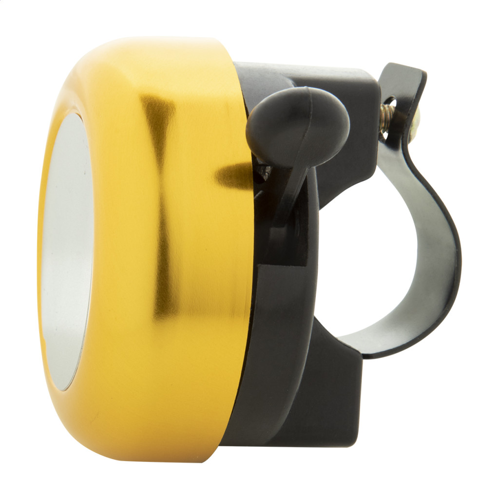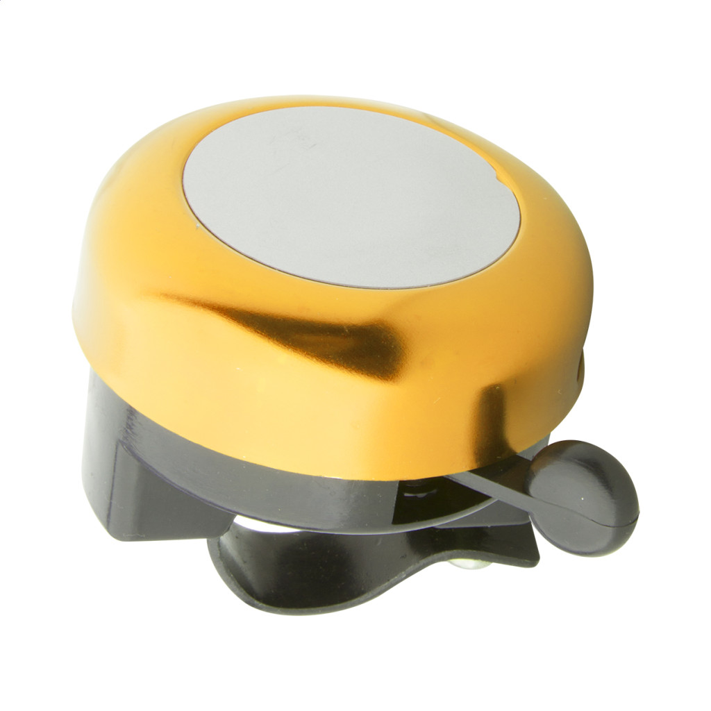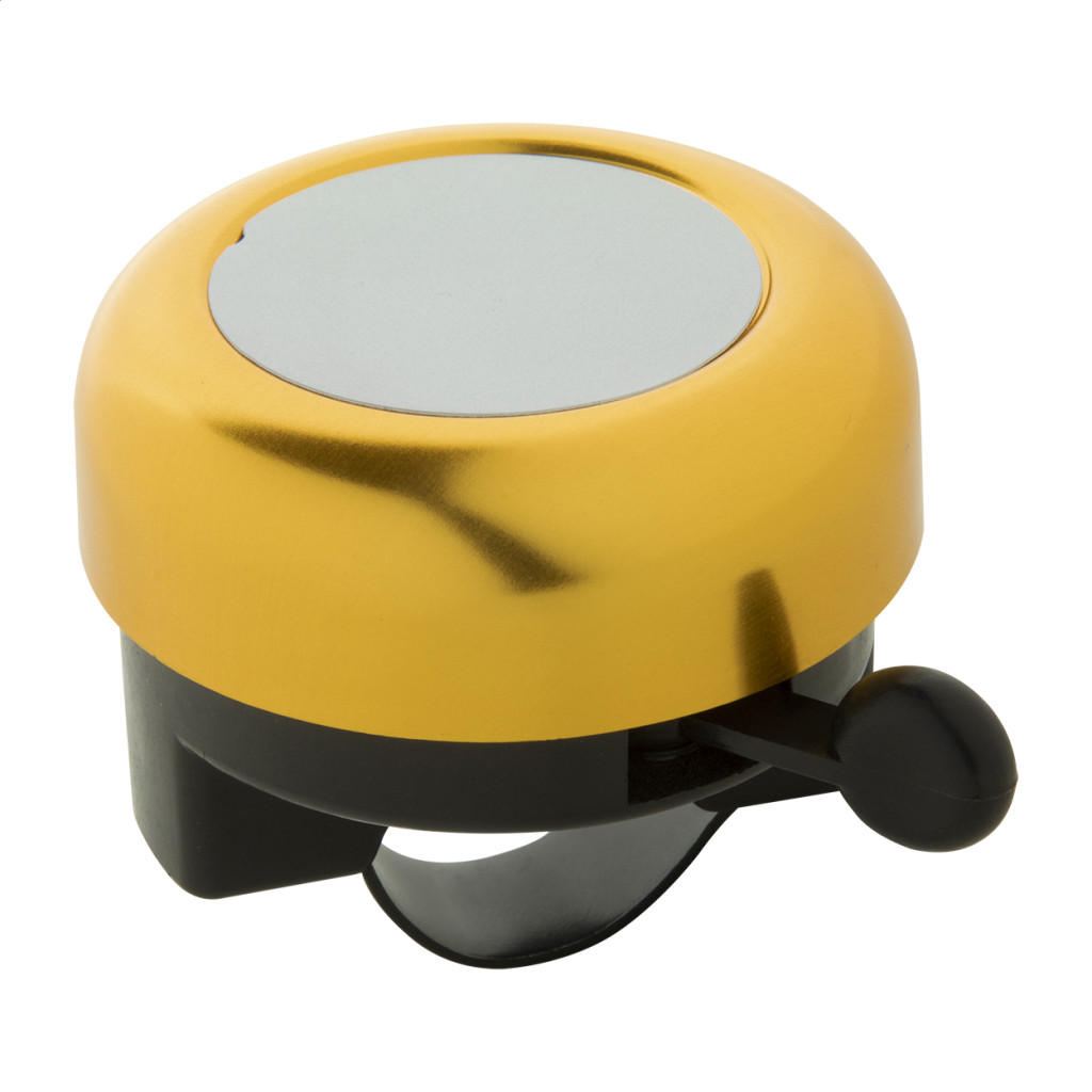Színes alumínium kerékpár csengő ezüst emblémázható felülettel.