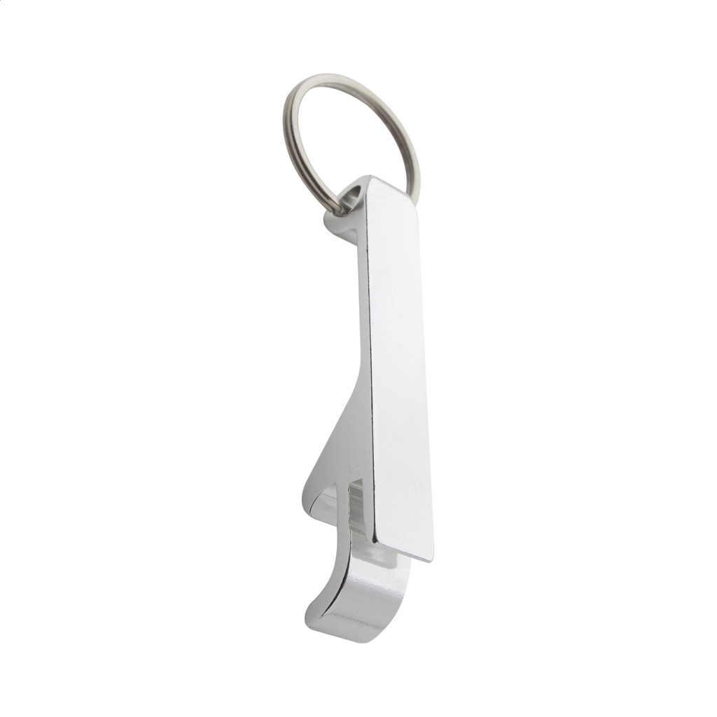 Alumíniumból készült üvegnyitó, kulcskarikával.