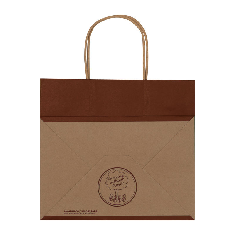 Kisméretű, környezetbarát, újrahasznosított papírtáska (120 g / m²), alsó megerősítéssel és 2 erős fogantyúval, színes elő és hátoldallal, amit akár többször is újrahasználhat.