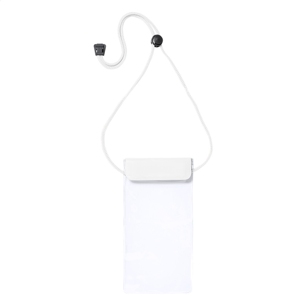 PVC-ből készült, vízálló telefontok hozzáillő színű nyakpánttal. Legfejebb 6.5" méretű, érintőképernyős telefonokhoz alkalmas.
