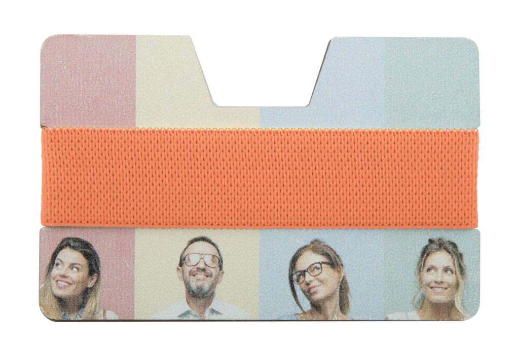 HDF fa anyagú kártyatartó pénztárca gumipánttal. Ideális UV LED emblémázáshoz.