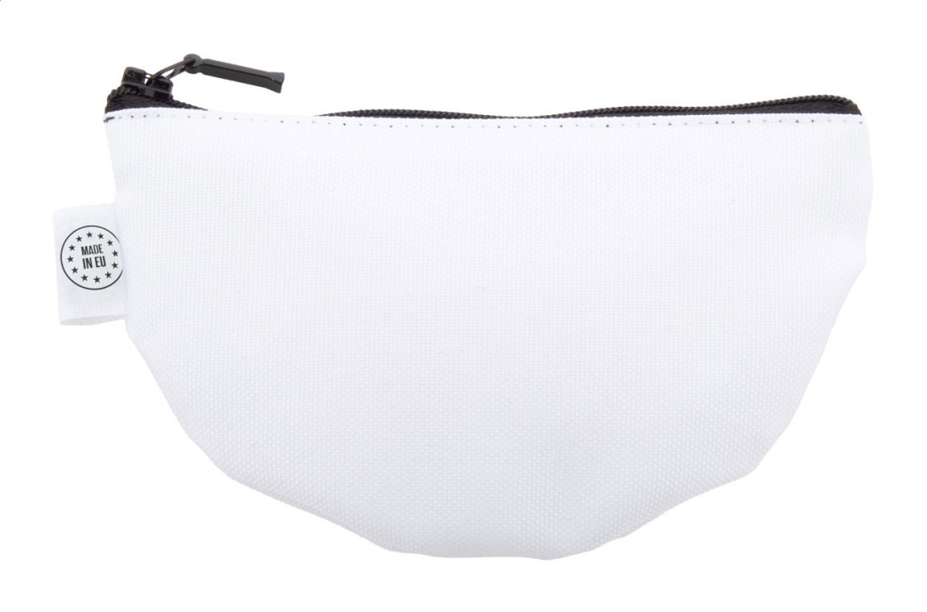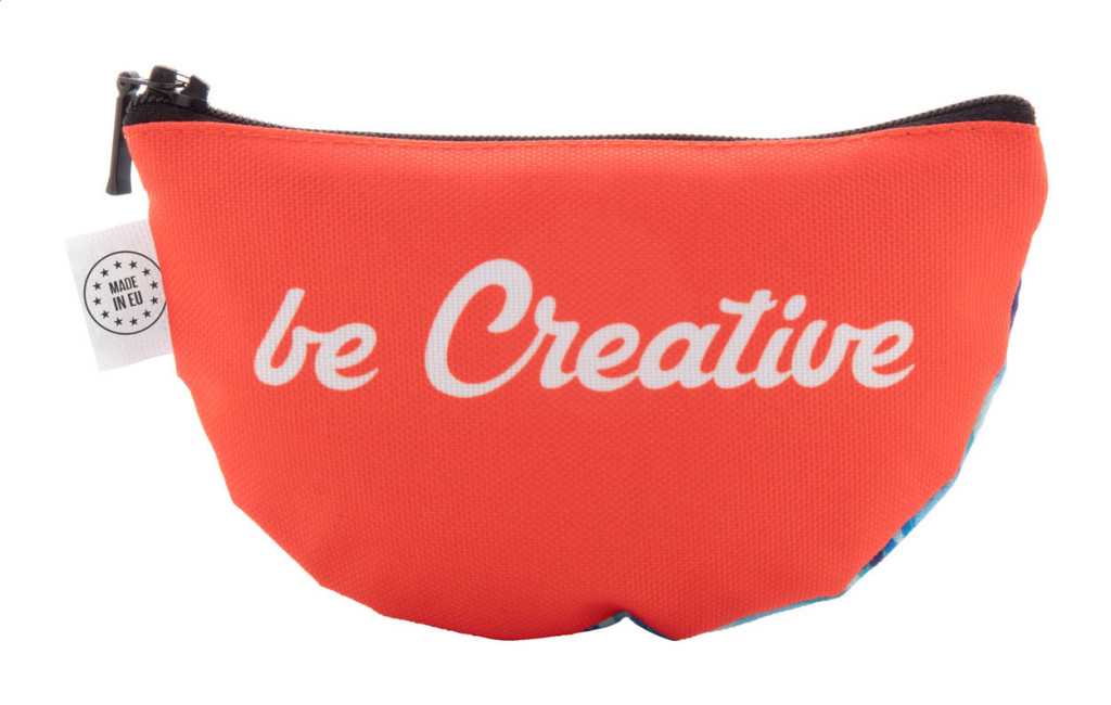 Egyediesíthető, 600D RPET poliészterből készült félkör alakú cipzáros pénztárca. Megkülönböztető RPET címkével, teljes felületén szublimációs eljárással emblémázva. Minimális rendelési mennyiség: 50 db.