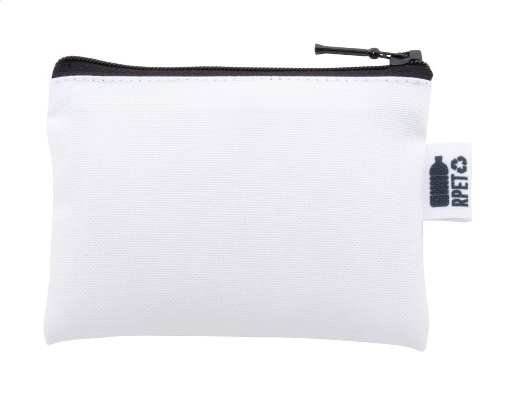 Egyedi gyártású cipzáras RPET pénztárca 600D poliészter anyagból, megkülönböztető RPET jelzéssel. Teljes felületén szublimációs eljárással emblémázva. Minimális rendelési mennyiség: 50 db.