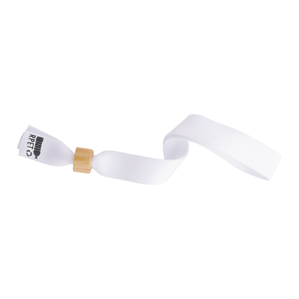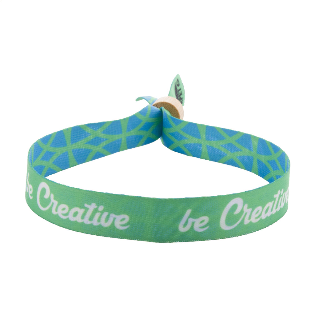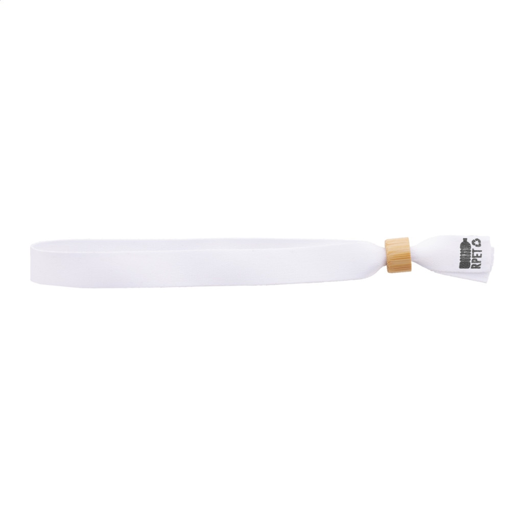 Egyediesíthető, RPET poliészter fesztivál karszalag, bambusz biztonsági zárral. Szublimációs emblémázással a termék mindkét oldalán. Minimális rendelési mennyiség: 100 db.