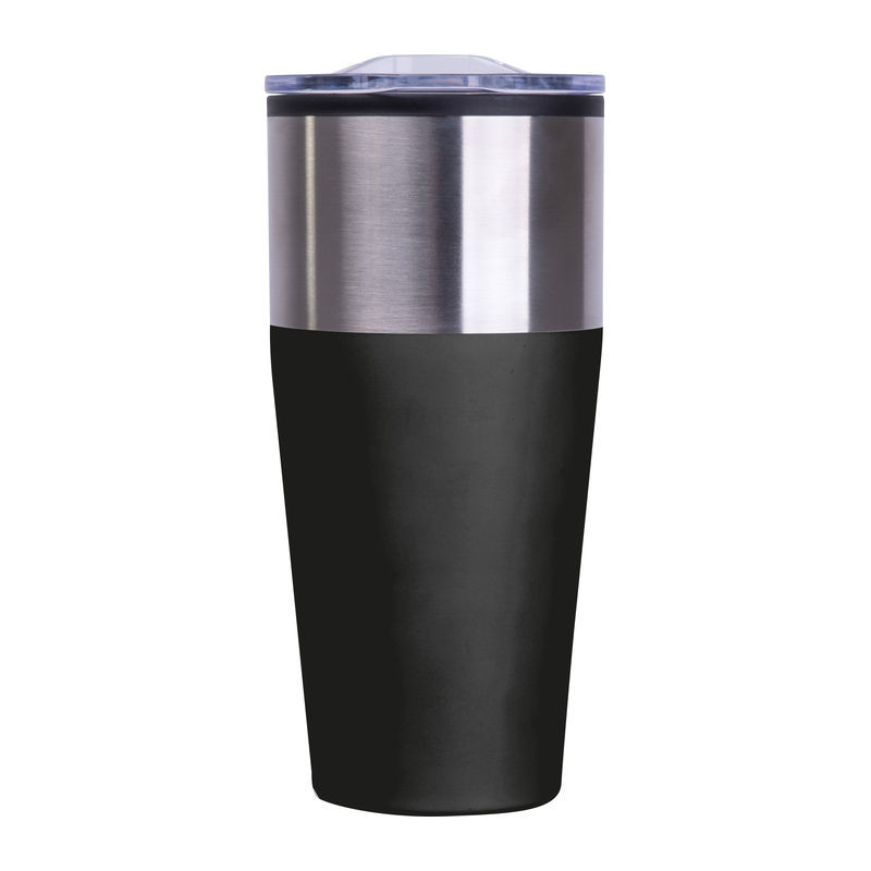 Duplafalú 600 ml-es utazó pohár műanyag belsővel és rozsdamentes acél külsővel. Hosszabb ideig melegen vagy hidegen tartja az italokat, szénsavas italokhoz is alkalmas.
