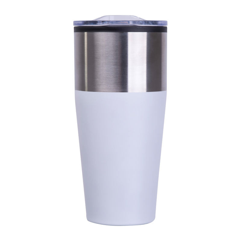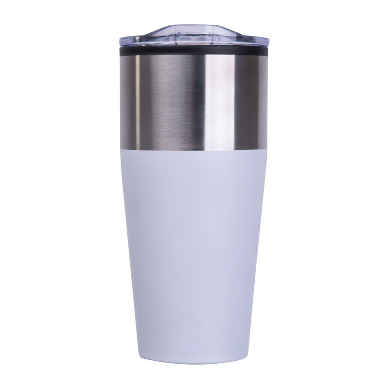 Duplafalú 600 ml-es utazó pohár műanyag belsővel és rozsdamentes acél külsővel. Hosszabb ideig melegen vagy hidegen tartja az italokat, szénsavas italokhoz is alkalmas.