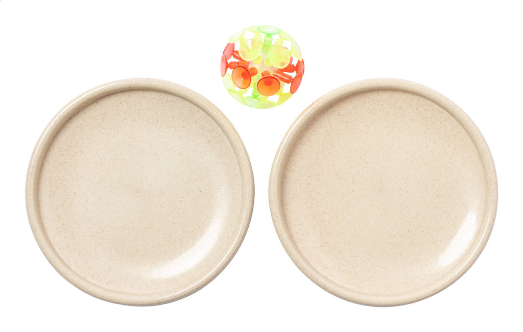 Strandjáték tapatókorongos labdákkal és búzaszalma műanyag elkapóval, rugalmas pánttal.
