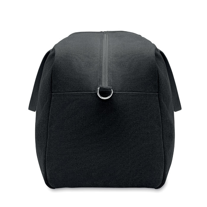 Utazótáska 450 g/m² vastag újrahasznosított anyagból (60% újrahasznosított pamut és 40% újrahasznosított poliészter), állítható és levehető pamut vállpánttal.