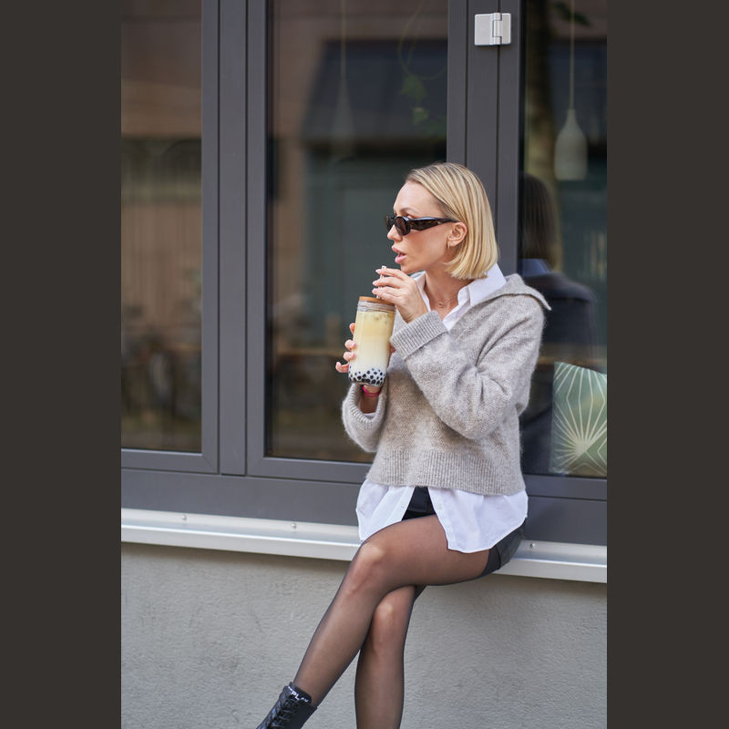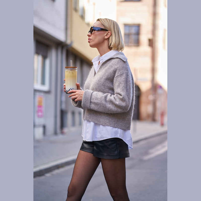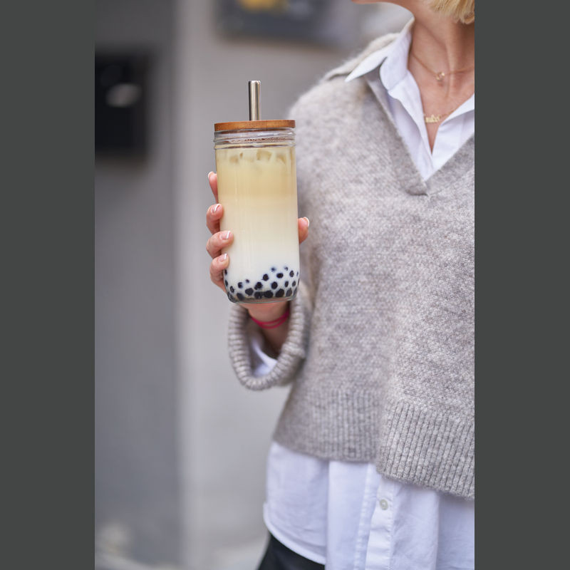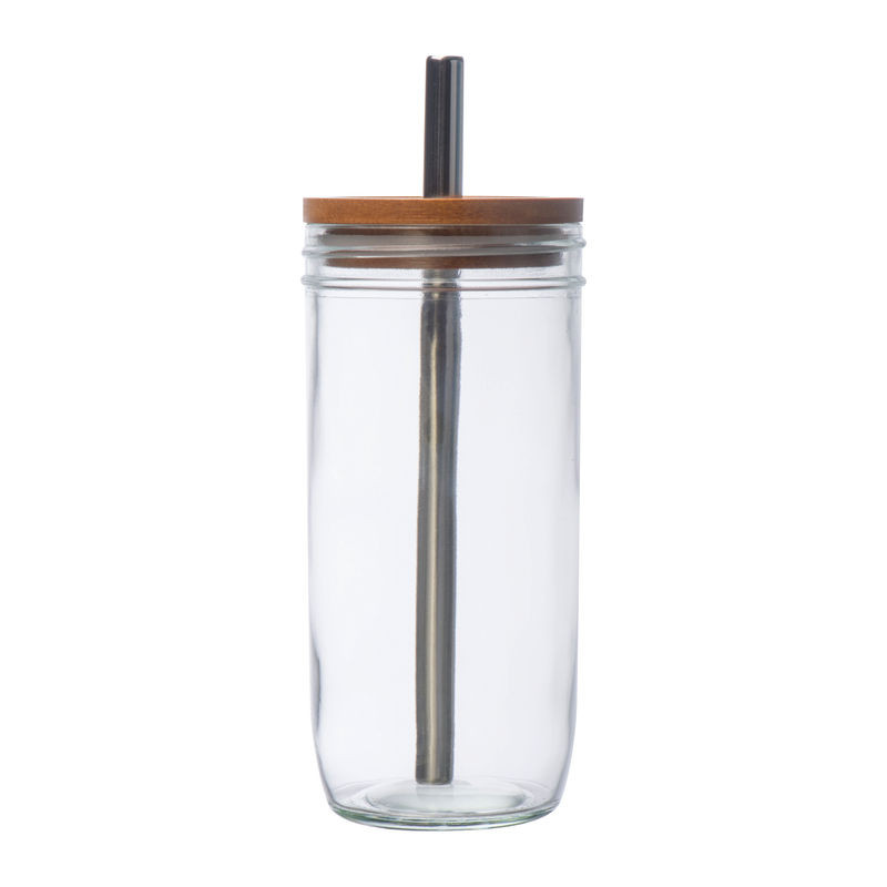 Üvegpohár szívószállal és bambusz fedéllel, 650 ml