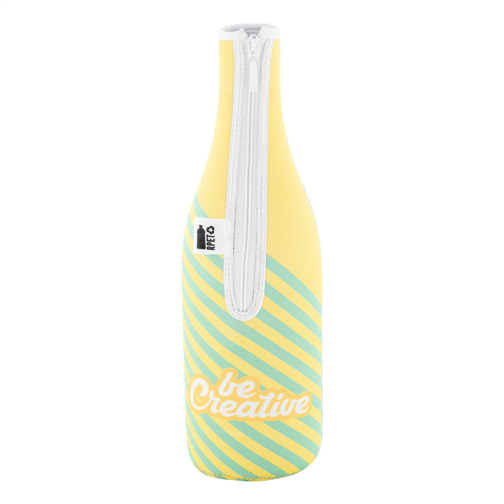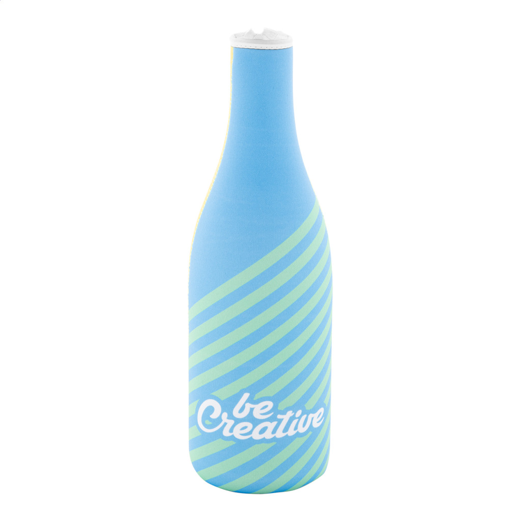 Egyedi gyártású, cipzáras RPET neoprén hűtő borítás boros- vagy pezsgősüveghez. Teljes felületén szublimációs nyomtatott grafikával. Minimális rendelési mennyiség: 25 db.