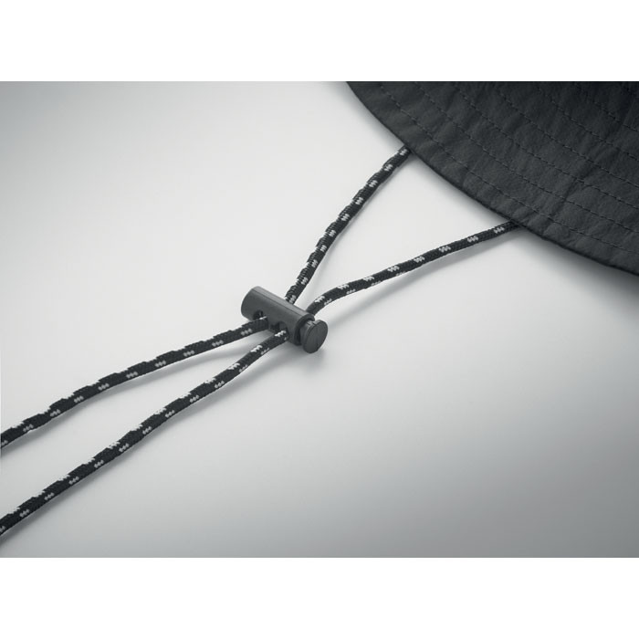 Vízlepergető horgászkalap poliészterből, saját anyagú tasakkal és ABS karabinerrel. 64 g/m².